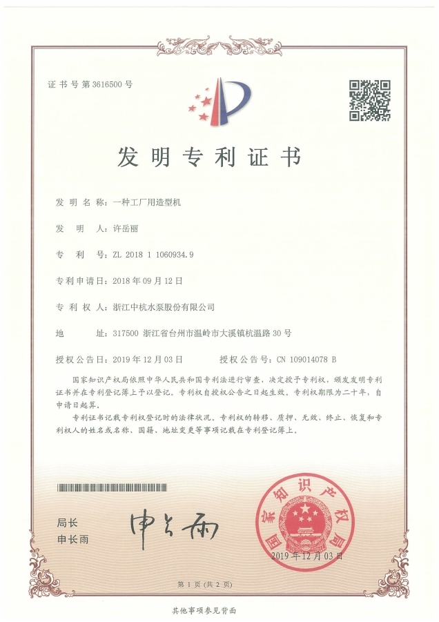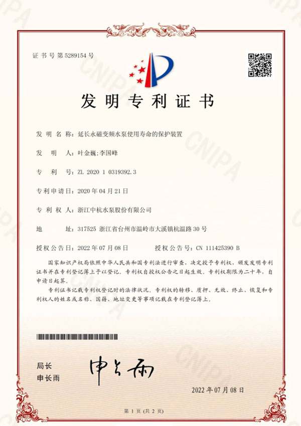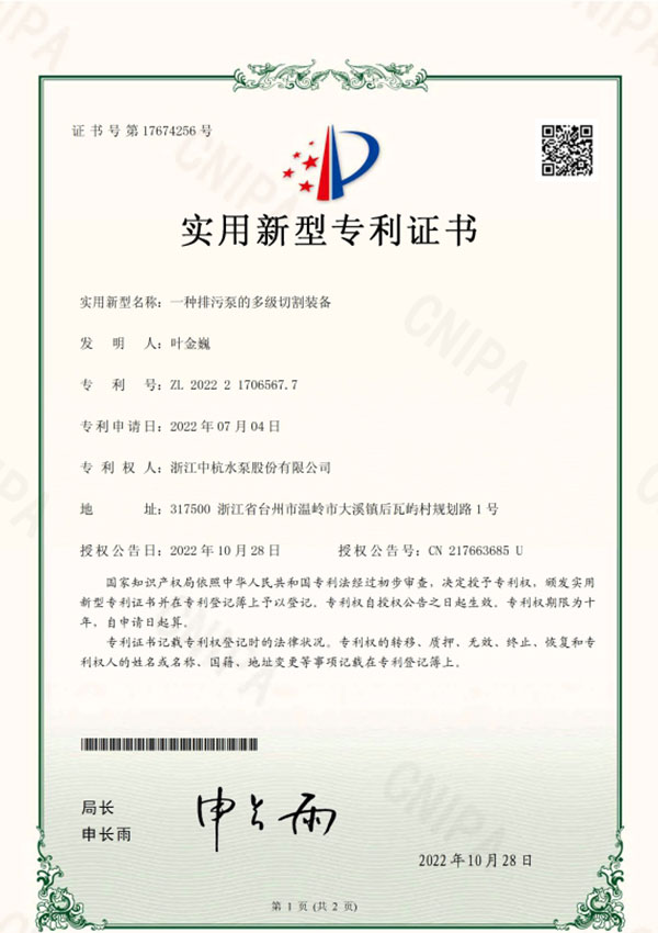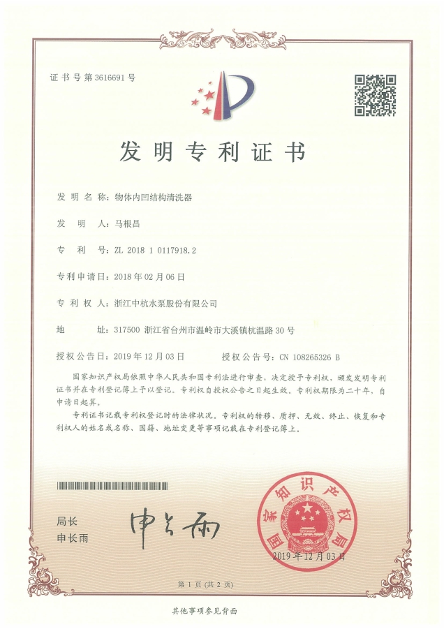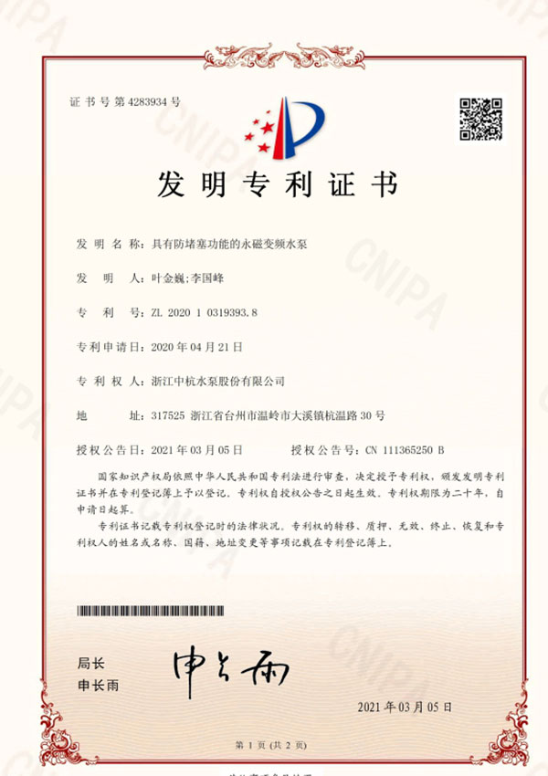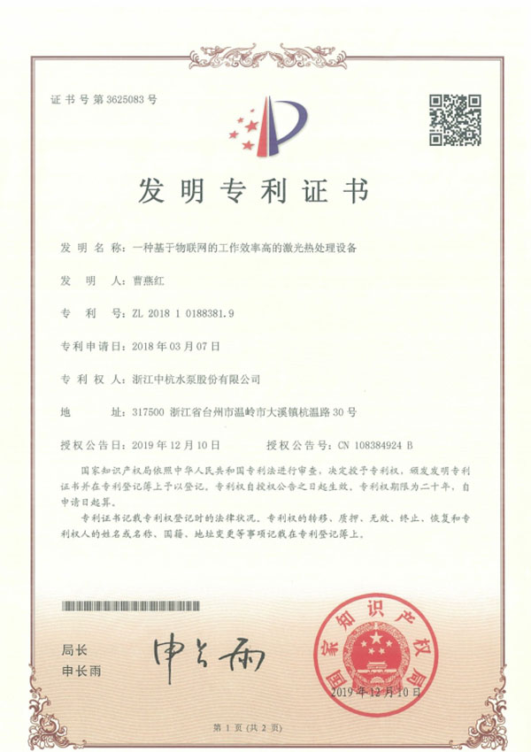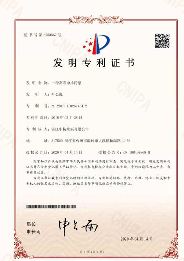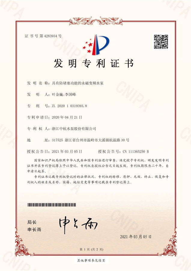 中杭水泵 資質(zhì)與專利